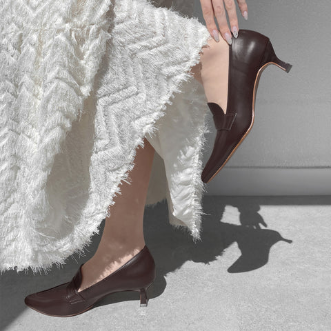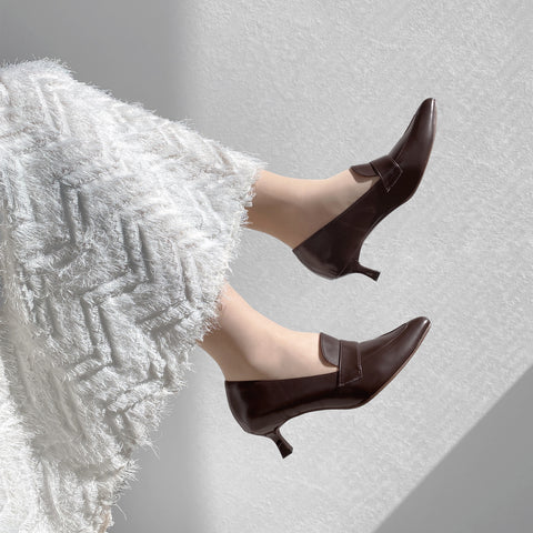 20%OFF:ポインテッドトゥ ローファー パンプス(m55204)ダークブラウンG