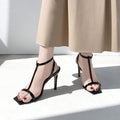 Sandals with a 9cm heel and a thin T-strap that gives your feet a relaxed and elegant look. The square toe gives it a trendy look, making it an excellent pair that can be used in a wide range of situations, from daily wear to occasions.