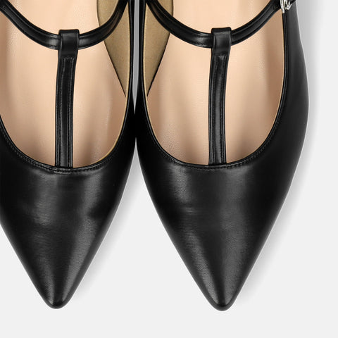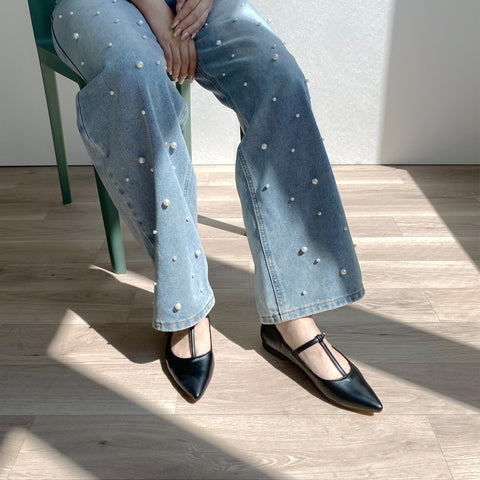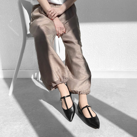 An excellent pair of flat shoes that are comfortable to wear, and the T-strap and pointed toe give you beautiful, feminine feet all at once. It can be used in a wide range of situations, from work to private.