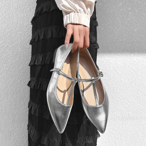 The flat shoes are comfortable to wear, and the T-strap and pointed toe make your feet look feminine and beautiful at once. It can be used for a wide range of occasions, from work to private use.