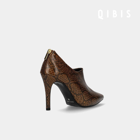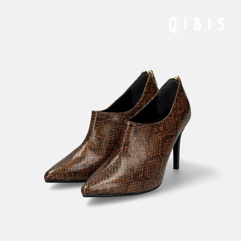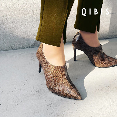 15% OFF: QIBIS: 9cm Heel Pointed Toe Booties (QM1023) Python Pattern