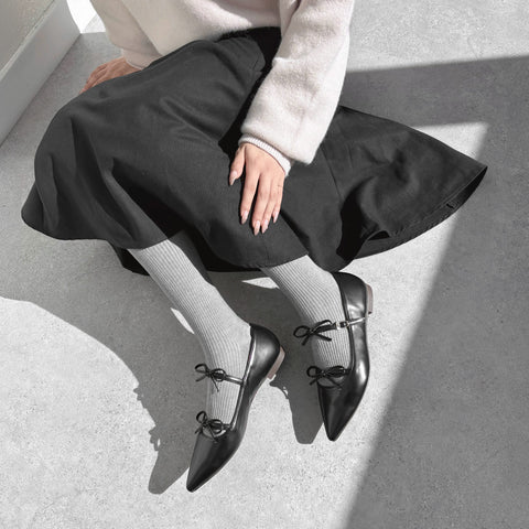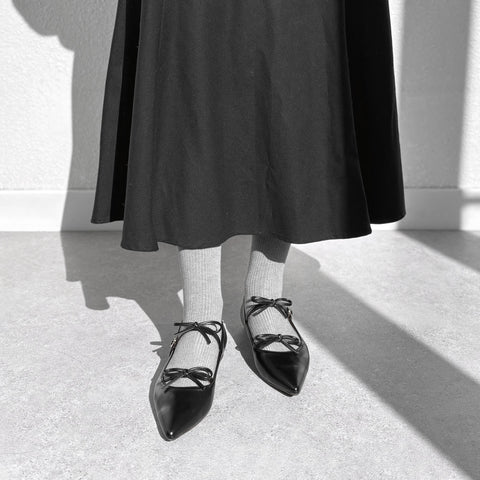 50%OFF:ダブルリボン ポインテッド フラット(m17040)ブラック