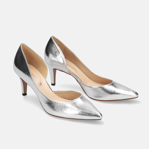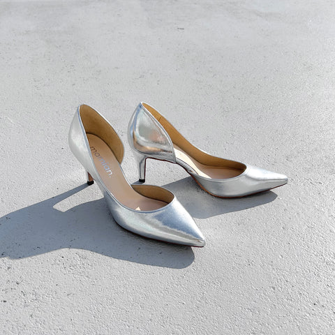 15% OFF: 2024SSBI: Pointed Toe Side Cut Pumps (7674) Silver