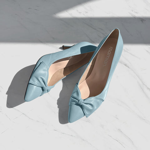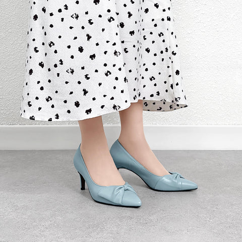 ラストワン2025SS:リボンデザイン パンプス(m72026)ブルーグレー