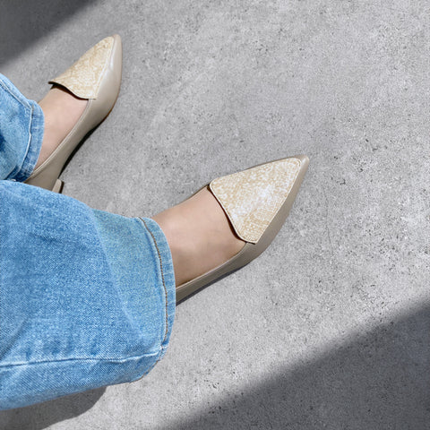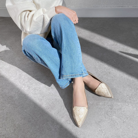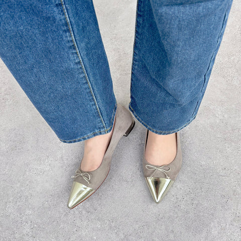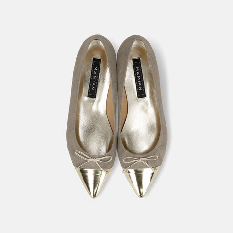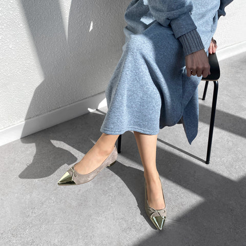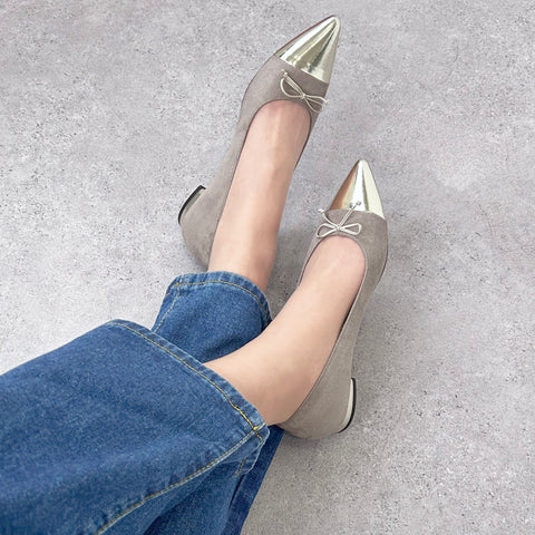 2025AW:リボン フラットシューズ(m17042)グレージュ/C